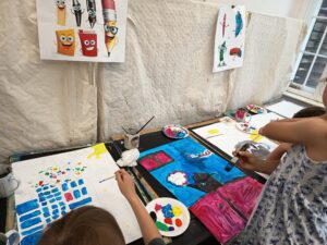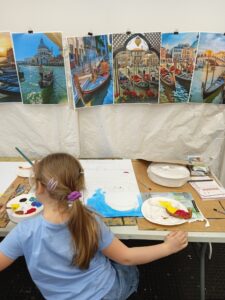 Dzieci malują farbami akrylowymi: