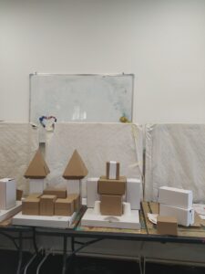 Wieżyce, rozety, gotyckie łuki – z tektury architektonicznej. Wielka katedra z kartonów i pudełek. Wszytsko w stylu