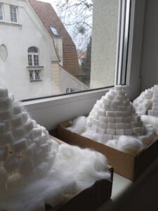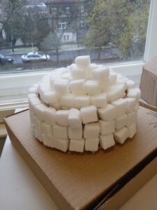 A następnie tworzą jej model z tektury.