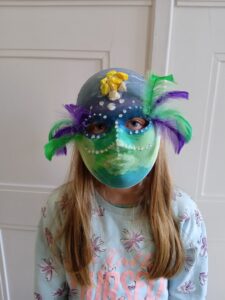 Papier-mâché + złoto, turkus, czerń → maska lub figurka mini mumii !