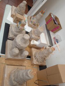 Gąbka, masa elastyczna, druty, rogi, anteny, farby UV.
