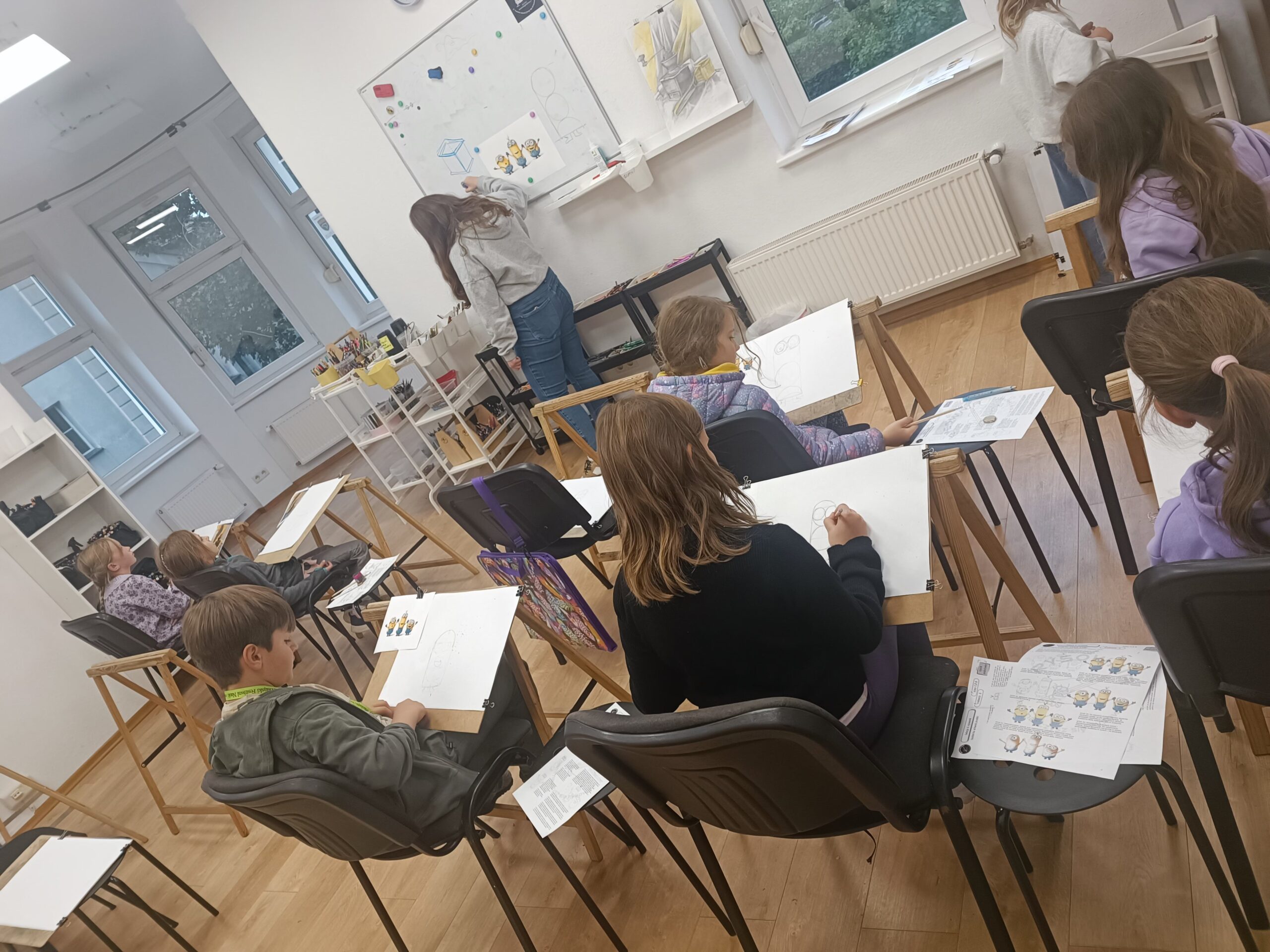 Dzieci poznają zasady perspektywy linearnej.